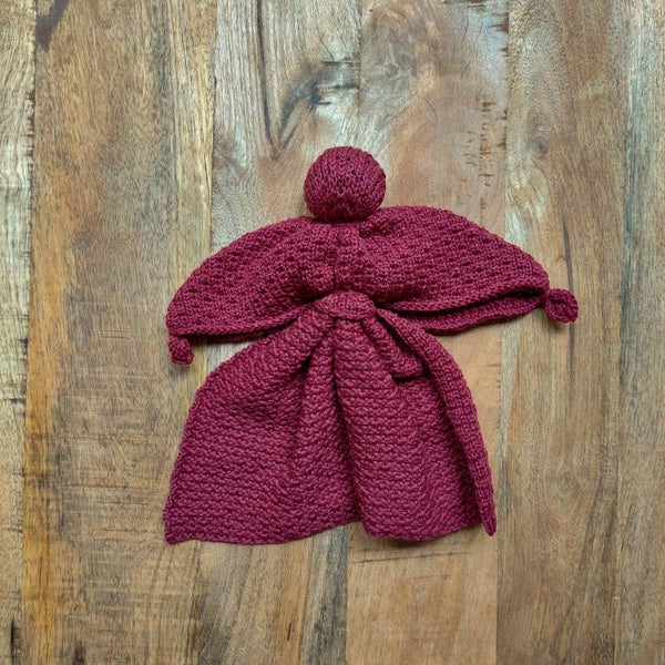 Dit lieve knuffelpopje is ongeveer 25 centimeter groot.